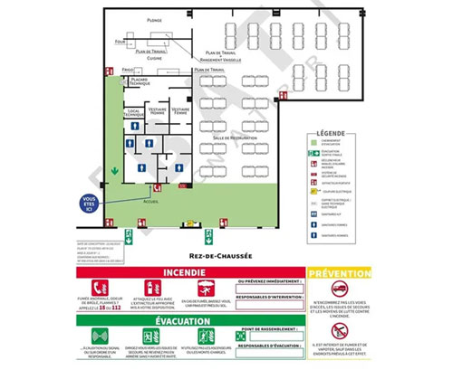 Chaque plan à vocation à indiquer le chemin à suivre en cas d’évacuation urgente. Cela permet aux personnes qui veulent évacuer de savoir où ils se trouvent tout en leur banalisant la voie à suivre pour sortir rapidement et de façon sécurisée.